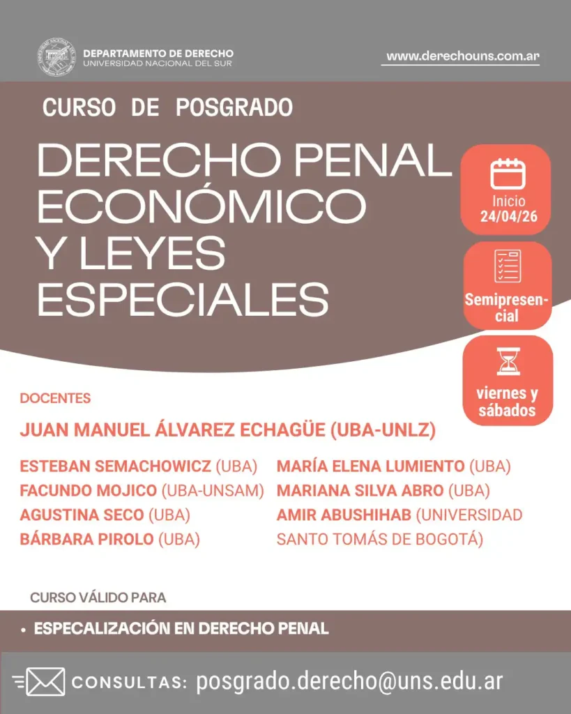 Si tenés alguna consulta por favor escribir a posgrado.derecho@uns.edu.ar